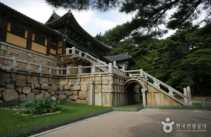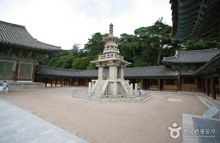 불국사 대웅전 앞뜰에 동서로 마주서 있는 석탑 가운데 서탑으로 국보 제21호로 지정되어 있다. 석가탑(釋迦塔) 또는 무영탑(無影塔)이라고도 하는데, 석가탑은 동탑인 다보탑(多寶塔)에 대칭되는 호칭이다. 이러한 호칭은 『법화경』에 이른바 다보여래(多寶如來)와 석가여래(釋迦如來)가 나란히 앉아 하나는 설법하고 하나는 증명하는 데서 연유한 것으로 보인다. 따라서 다보탑은 다보여래상주증명(多寶如來常住證明)의 탑이요, 석가탑은 곧 석가여래상주설법(釋迦如來常住說法)의 탑이다. 그러나 이 탑에서 나온 「불국사무구정광탑중수기(佛國寺無垢淨光塔重修記)」는 1024년(현종 15)에 불국사 무구정광탑을 중수하면서 남긴 기록인데, 1038년(정종 4)에 다시 옮겨 적은 것으로, 이 탑(혹은 다보탑)을 무구정광탑으로 지칭하고 있어 고려시대에는 불국사의 두 탑이 석가탑이나 다보탑으로 불려지지 않았던 것을 알 수 있다. 그동안 『불국사고금역대기』에 의해서 석가탑 창건을 751년으로 보았으나, 묵서지편에서 나온 두 종류의 중수기 기록으로 다보탑과 석가탑 모두 대성각간(大城角干)의 주도하에 불국사 쌍탑으로 신라 경덕왕 원년(742)에 창건되었음을 밝혀주고 있다.) (자료출처 : 대한민국 구석구석 - korean.visitkorea.or.kr)